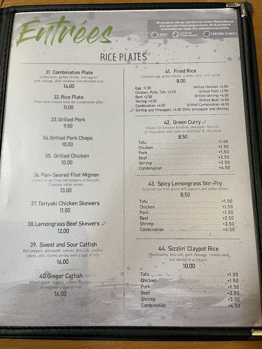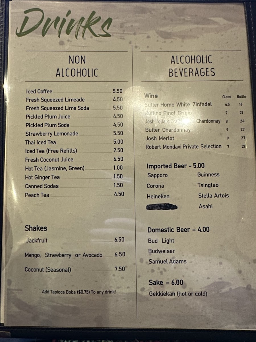 You’ll find staple favorites like the Rare Beef Pho and Clay Pot Rice Bowls, which provide a satisfying, hearty meal that keeps the warmth going from the first bite to the last. For lighter moments, options like Lemongrass Chicken Spring Rolls or a fresh Chicken Salad offer a crisp, refreshing contrast. The menu also features gently spiced drinks such as Thai Iced Tea and fresh coconut juice, which complement the food’s vibrant flavors and add to the unhurried, inviting atmosphere.